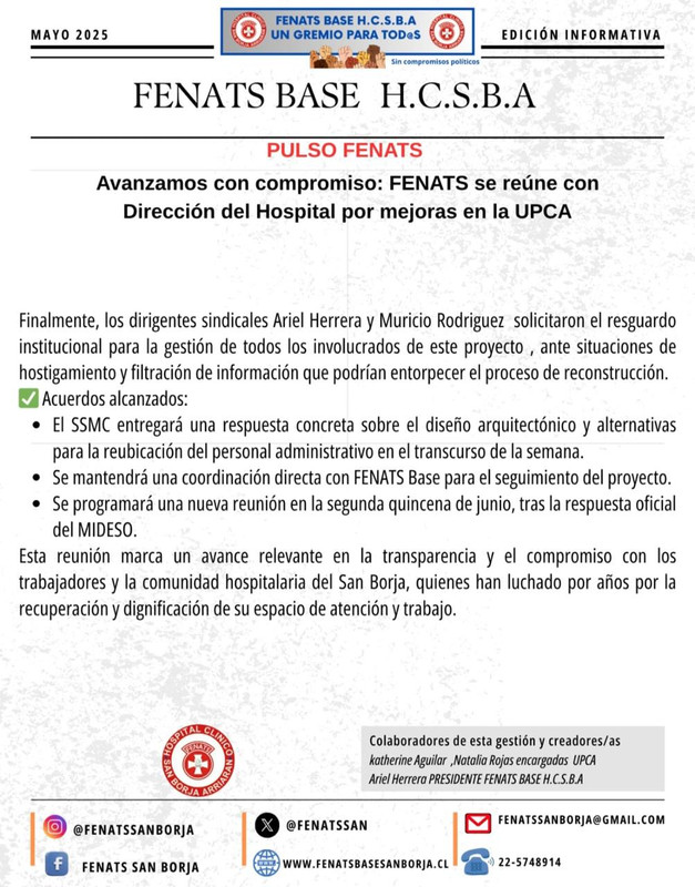 FENATS se reúne con dirección del hospital